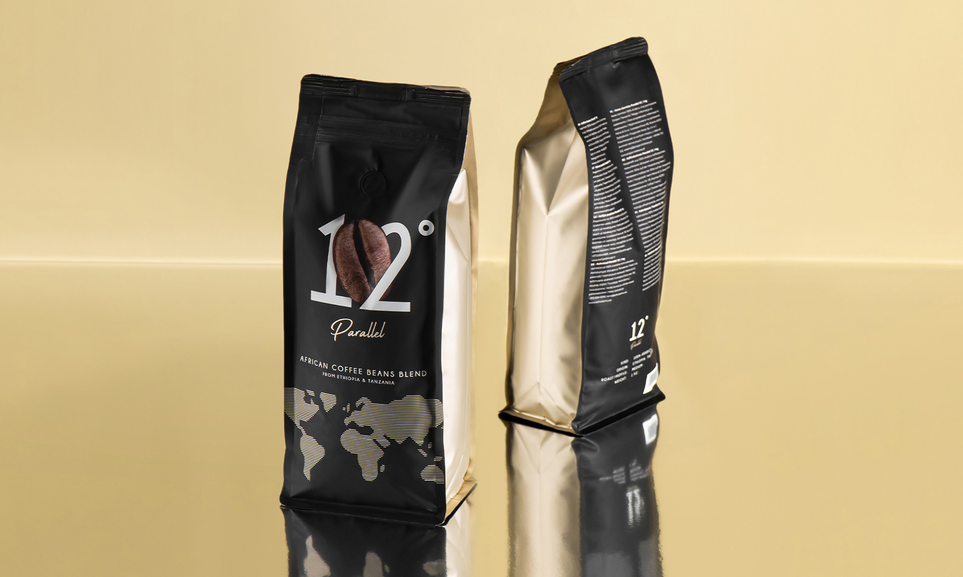 We have created not only the unique design, but also a package with all the necessary information that buyers need. Therefore, the current Parallel coffee packaging can stand on the shelf without the box.